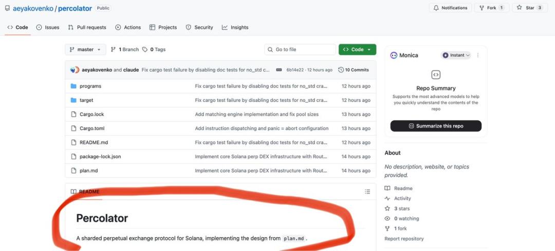 之前就撰文分析过,Perp Dex 一定会在 Solana 生态内爆发。这不,@aeyakovenko 意外曝光的 Github 仓库,一个名为 Percolator 的分片式永续合约协议框架成了关注焦点: